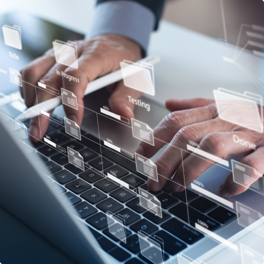 「営業」「マーケティング」といった社内業務の領域別や「製造業」「小売業」のような業種別など、さまざまな角度から分析し、最適なDX手法を提案いたします。